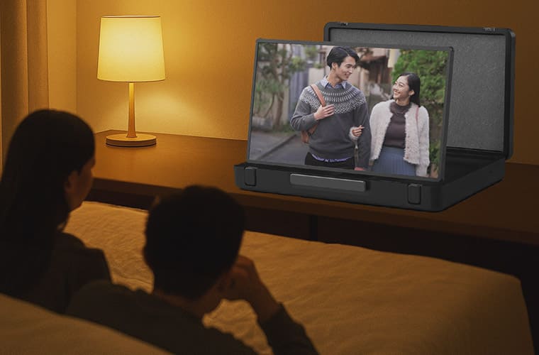 寝室や一人暮らし用リビングなどで、YouTubeやNetflixなどのアプリ動画を視聴するための端末として。すっきり収納できるのでミニマリスト層にも◎。