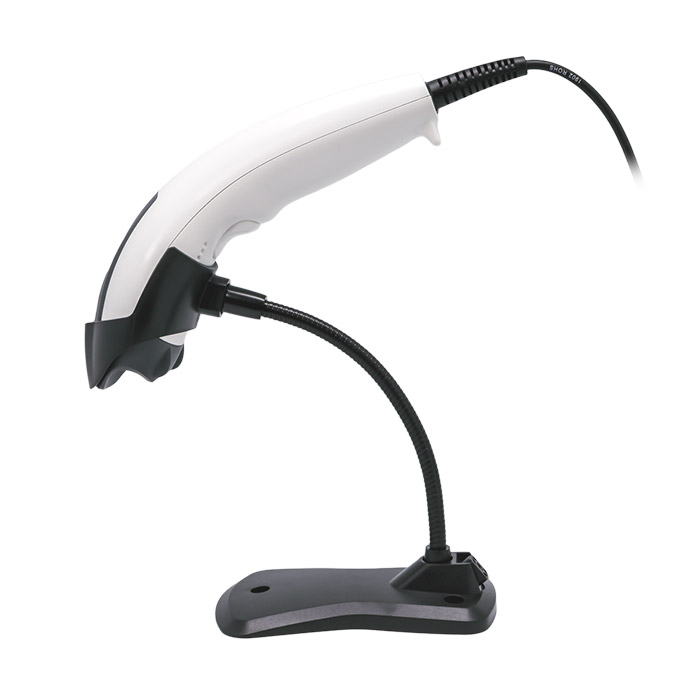 専用スタンドHOL-KCIIと組み合わせることで、バーコードをかざして読み取る運用に対応します。レジ、検品、仕分けなど、両手を使いたい作業にも適しています。