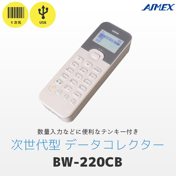 BW-220CB バッチモデル | アイメックス テンキー付 データコレクター USB転送タイプ | 一次元コード対応 メモリ蓄積バーコードリーダー AIMEX